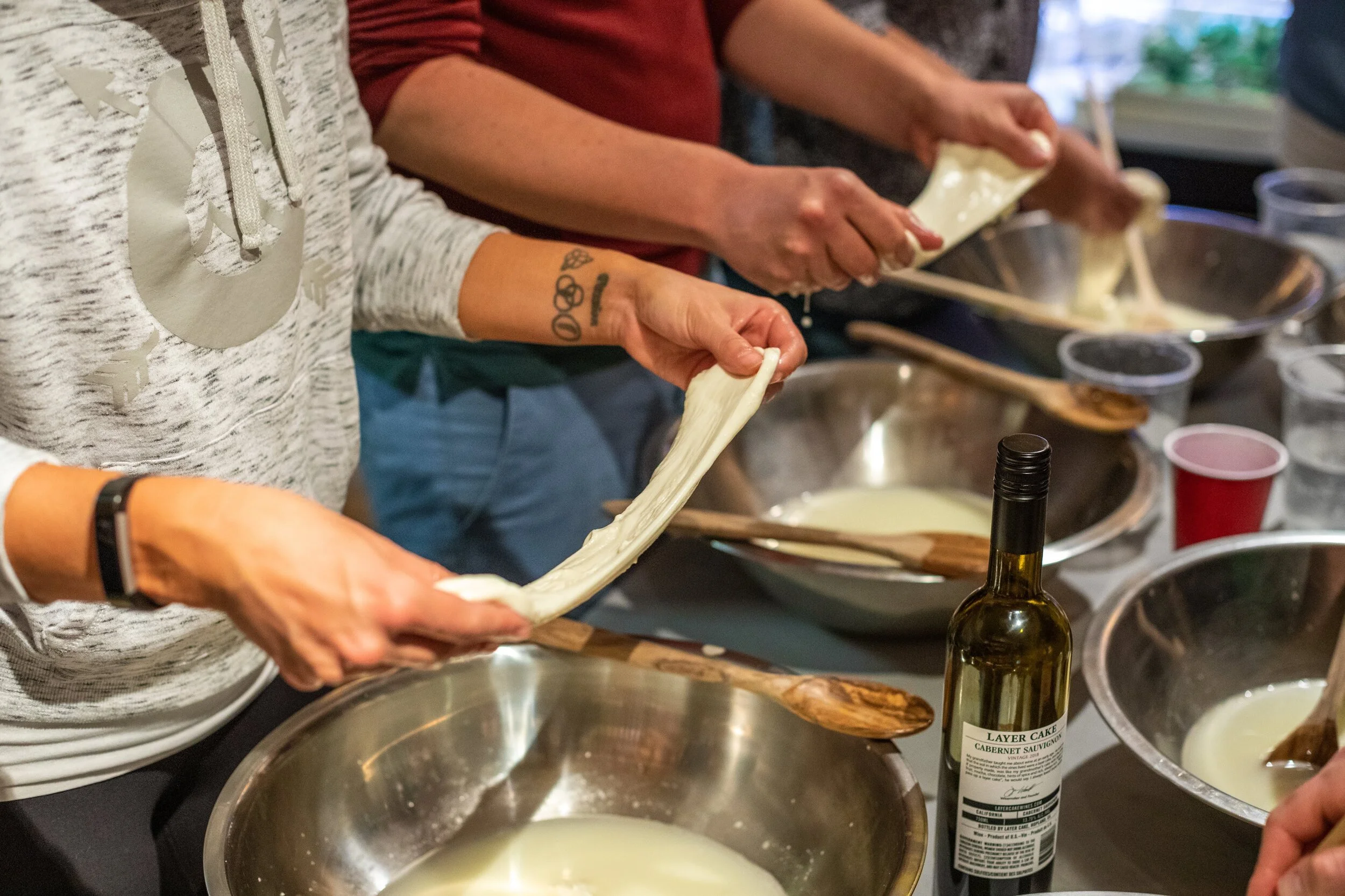 Charcuterie & Wine: There will be a few breaks during the cheese-making process. The class setting is casual. You will be able to get up and enjoy charcuterie and wine at any point during the class.